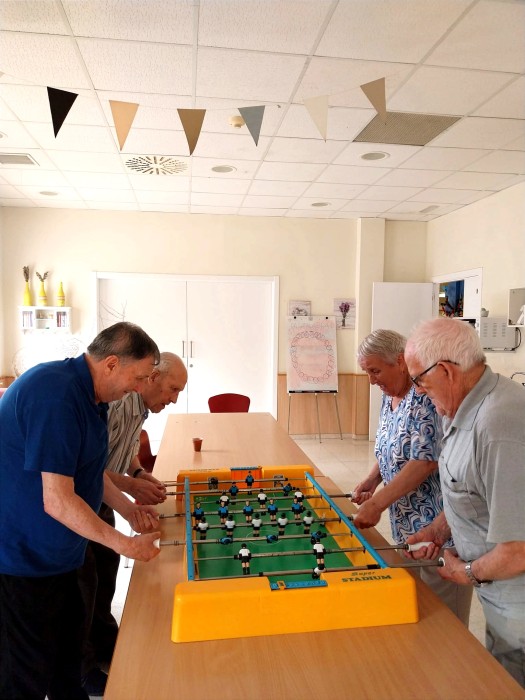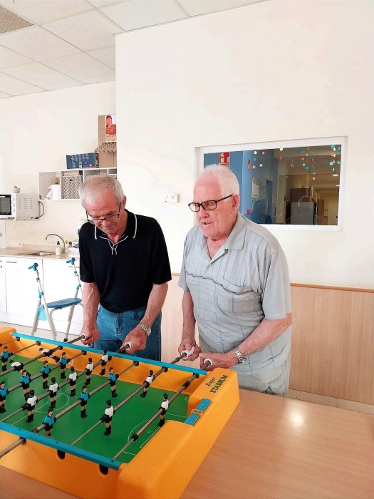 Fotos del torneig de futbolí. Hem descobert que Ramón és un prodigi jugant i s'ha convertit en el jugador estrella. Angelina ho ha donat tot i cada vegada que marcava gol ens feia riure a tots. Santiago ha jugat en equip i li ha agradat molt. Miquel, Paco i Miralles ho han donat tot i han animat els partits.