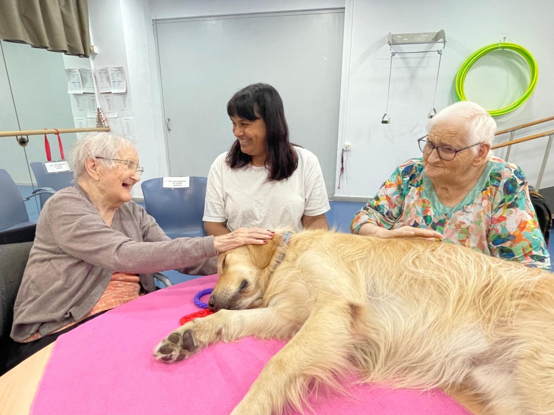El contacte amb els nostres amics de quatre potes ajuda a reduir l’estrès, millorar l’ànim i fomentar la companyia entre residents. Cares felices, carícies i moltes estones de joc que omplen els nostres dimecres de caliu i benestar.