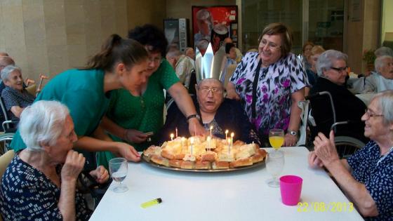 La setmana passada a L'Onada Alcanar vam fer un sopar a l'exterior aprofitant el bon temps i la terrassa del nostre centre. Els nostres avis feia temps que ens demanaven un sopar original i com tots sabeu els seus desitjos són ordres. Vam fer una torradeta i tots els avis van gaudir moltíssim. I per acabar el sopar d'una forma dolceta vam celebrar els aniversaris del mes d'agost. Així que vam acabar el soparet amb bona coca. Mireu quines cares de Felicitat!