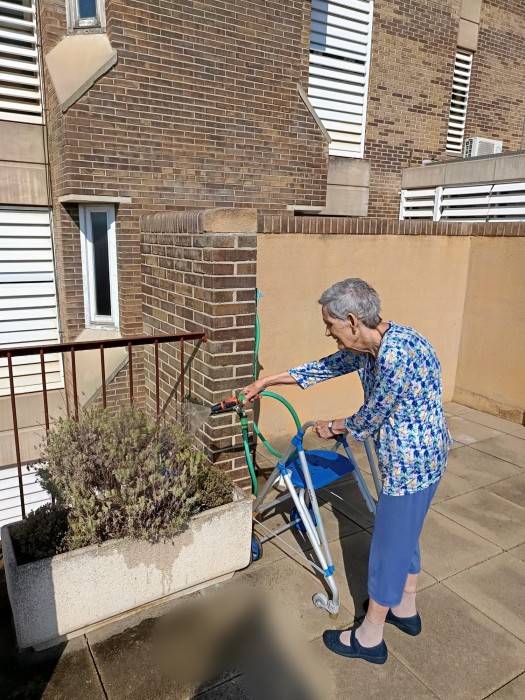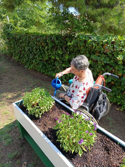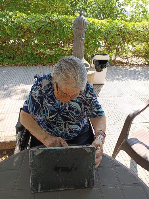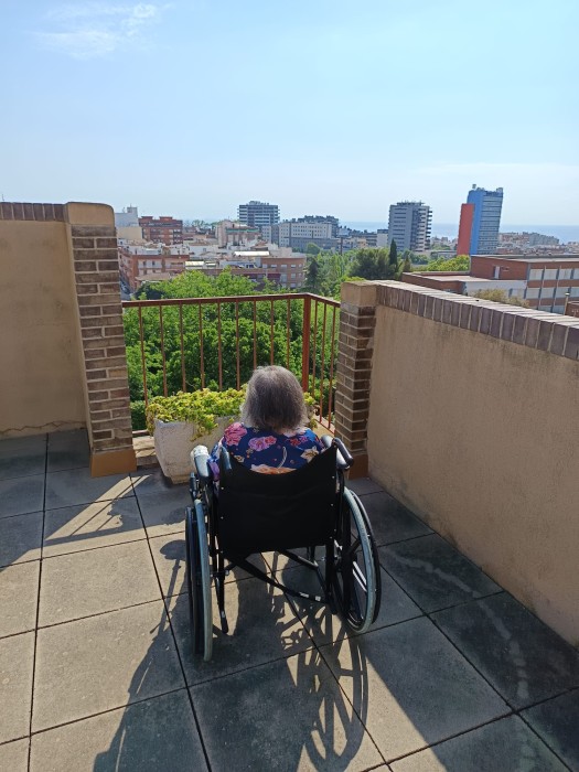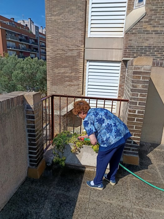 A Parc Serentill, aprofitem els espais exteriors per cuidar-nos i gaudir del dia a dia. Sortim a les terrasses i al jardí per regar les plantes, passejar una estona, olorar les flors i notar la brisa. Ens toca el sol i ens ajuda a agafar vitamines. Compartim converses, moments tranquils i activitats a l’aire lliure. Són espais que ens fan sentir bé i connectats amb la natura.