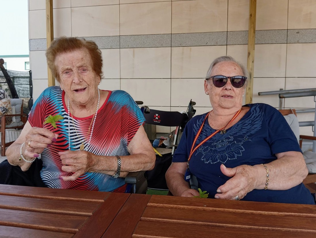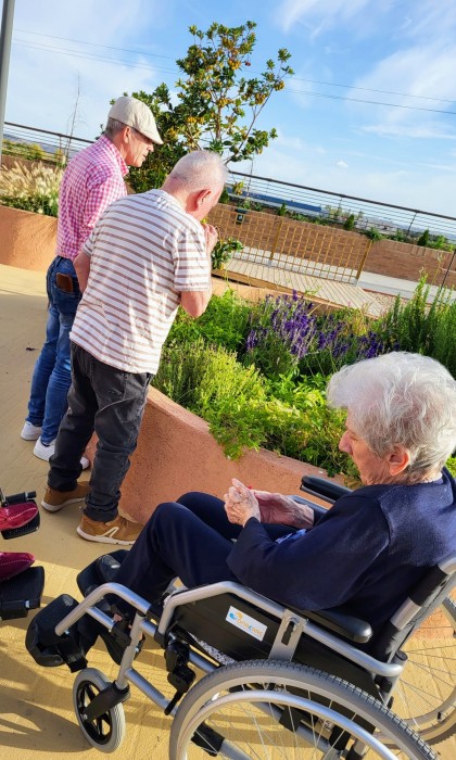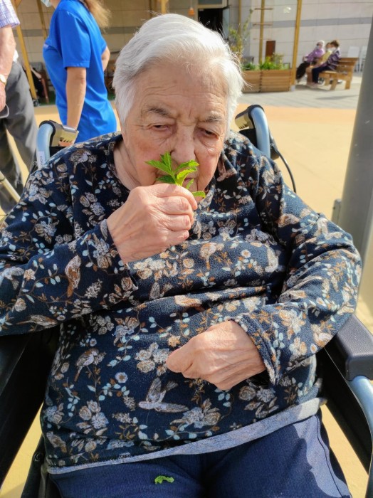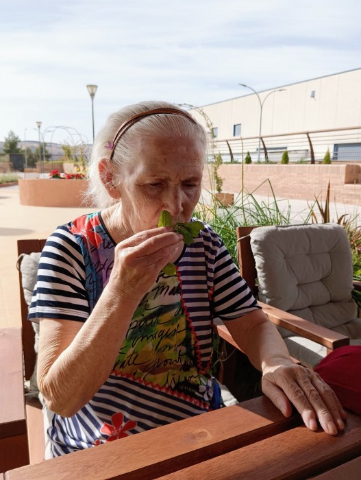 aprovechando el sol para oler la menta, tocar las plantas y ver los vivos colores de las flores