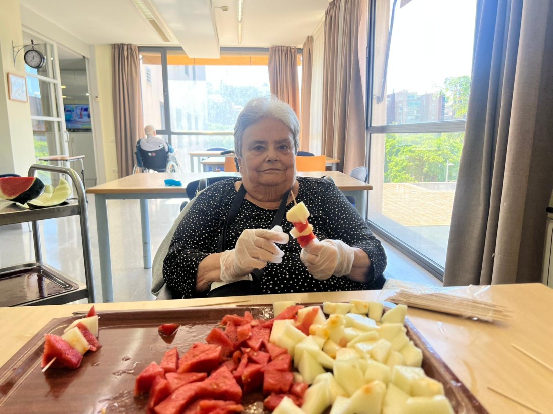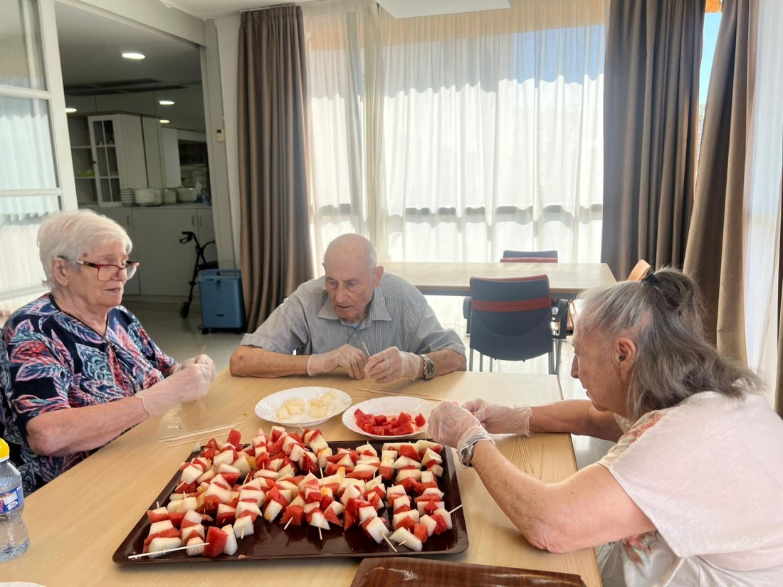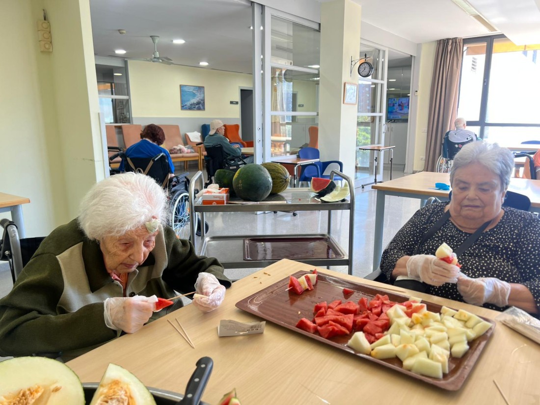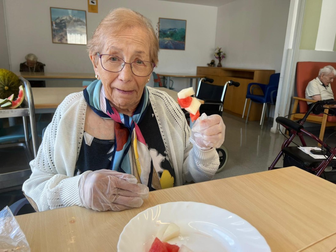 Avui hem gaudit d’un taller molt especial: hem preparat uns pinxos de síndria i meló plens de color i frescor! Els residents han participat activament en la preparació, tallant la fruita i creant combinacions divertides i ben bones.