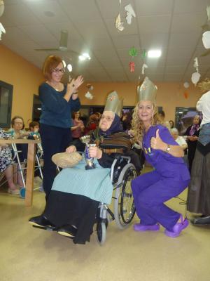 Com ens agrada una festa!! El passat dimarts 29 d'Octubre, vam organitzar un Concurs de Castanyeres! On diferents residents amb l'ajuda de les nostres auxiliars, i tècnics, van entenar en tres proves diferents per aconseguir guanyar els trofeus i les corones de campiones. Les categories eren "Passarel·la de Castanyes", on premiavem el vestuari més originarl, la segona prova "Estregègia de Màrketing de Vending els Panelleting", on cada parella se les ingeniava per convèncer al jurat de que les seves castanyes eren les millors, i la tercera prova: "Balla balla boniato que passarem un bon rato", on s'havia d'interpretar la cançó de La Castanyera. Des d'aqui, felicitar a totes les persones implicades en aquest concurs, ja que va ser tot i éxit!! Enhorabona equip!!