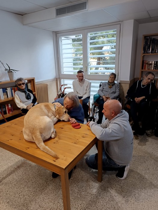 Aquesta setmana hem gaudit d'una sessió de Teràpia Assistida amb Gosos on hem conegut al Boby. Ha estat una activitat molt enriquidora plena de caricies, jocs, riures, alegria i musica en directe amb el saxofonista que ha arribat al cor. Moltes gràcies a: José Codina de @recuerdamealzheimer i a @jjfinquesbadalona2