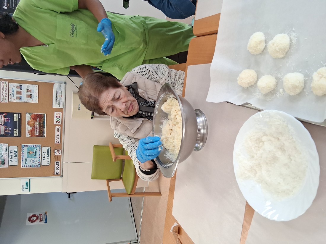 Taller de panellets de coco per menjar per berenar.