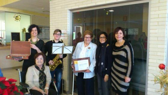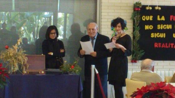 Com a guanyadors al millor missatge emblemátic de la postal pels premis ACRA, la Presidenta de la mateixa organització Cinta Pascual va venir a entregar els premis als iaios que havien participat en la Postal.