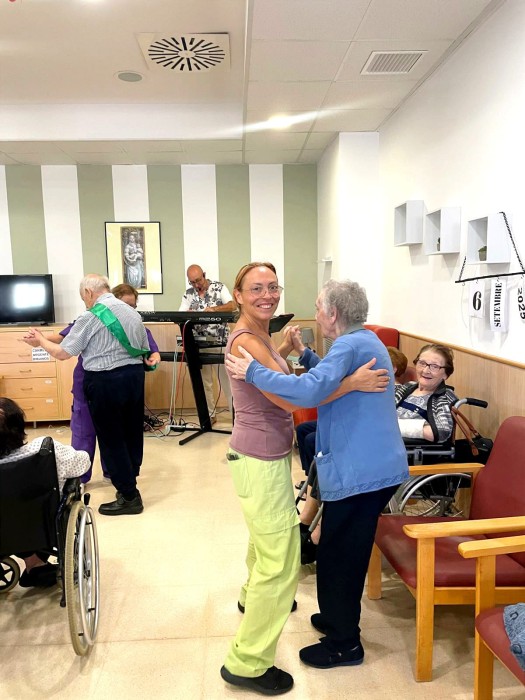 En aquesta residència som molt de ballar, ens deixem portar pel so de la música i sense adonar-nos acabem amb sessions de ball jeje.