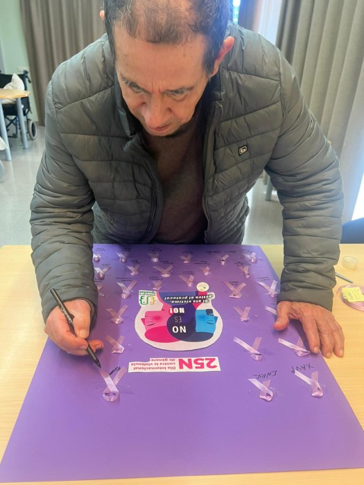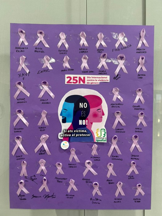 Avui hem participat totes i tots en la creació d’un mural pel Dia contra la Violència de Gènere. Un espai on hem deixat la nostra empremta personal per donar veu, força i pes a la lluita col·lectiva. Junts i juntes, fem visible el que mai s’ha de silenciar