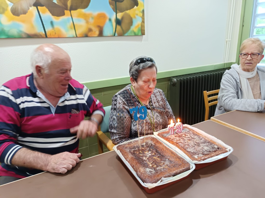 Esta tarde en el centro de día hemos tenido la alegría de celebrar el 79 aniversario de la señora Carmen.