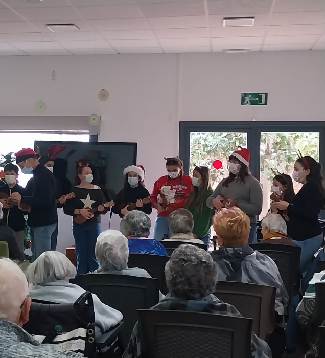 Els alumnes de l’Institut Joan Guinjoan ens han visitat per cantar unes precioses nadales, acompanyats de nombrosos ukuleles. Té molt mèrit l’esforç i la dedicació d’aquests joves, ja que al començament del curs no sabien tocar l’instrument i, malgrat això, han aconseguit interpretar totes les cançons de manera excel·lent.