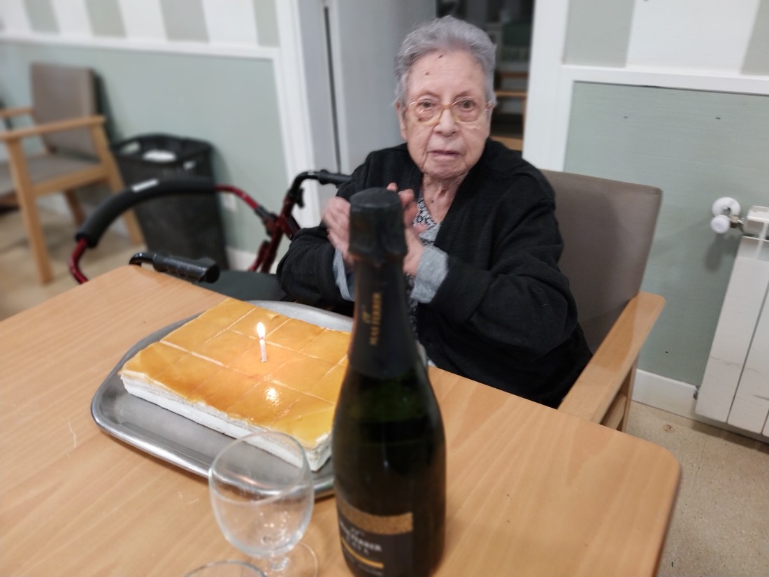 Aquest mes, la Sra. Mas va bufar les espelmes del seu pastís per celebrar els seus 94 anys!