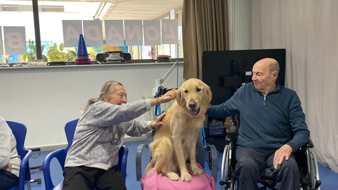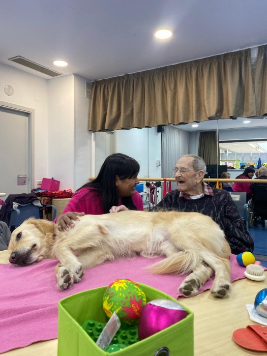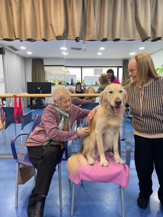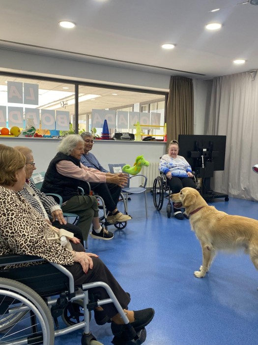 Cada dimecres a la residència gaudim de sessions de teràpia amb gossos amb la nostra estimada Sattie. A través d’activitats i jocs adaptats, els residents participen, s’activen i comparteixen moments plens d’afecte i diversió. Ens ho passem molt bé i aquestes estones ens aporten benestar, somriures i molta alegria.