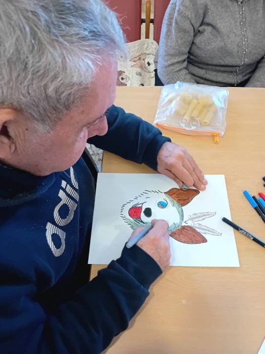Més fotos de la teràpia canina. Bibiana i Ura van fer un taller molt complet, a part del super collaret que li vam fer a Ura i de la nostra ració d'amor, vam fer altres coses... Vam deixar fluir la creativitat per a carnestoltes i vam començar a pintar i decorar les nostres pròpies màscares inspirades en Ura.