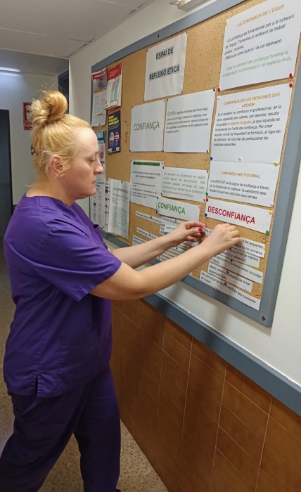 Durant el mes de Febrer a l'Espai de Reflexió Ètica hem treballat el valor de la confiança, escollit com un dels valors fonamentals en l'atenció a persones i el treball en equip. Varem demanar que s'identifiqués aquelles situacions del dia a dia que generen confiança i aquelles que generen desconfiança. El resultat el podeu veure a les fotografíes. Gràcies a totes les persones que han col.laborat!