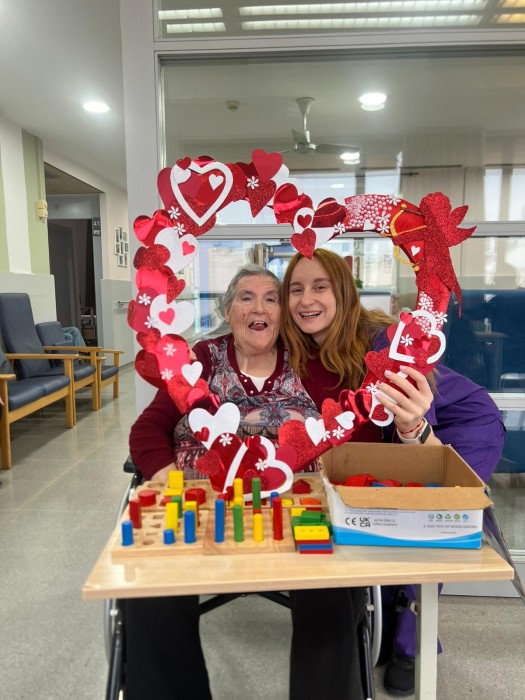 Vam preparar un photocall amb un gran cor perquè residents i equip poguessin fer-se fotos ben especials i guardar un record d’aquest dia tan bonic També vam gaudir d’unes postres boníssimes decorades amb cors que van endolcir encara més la celebració