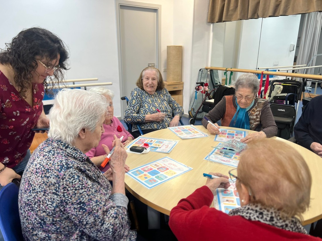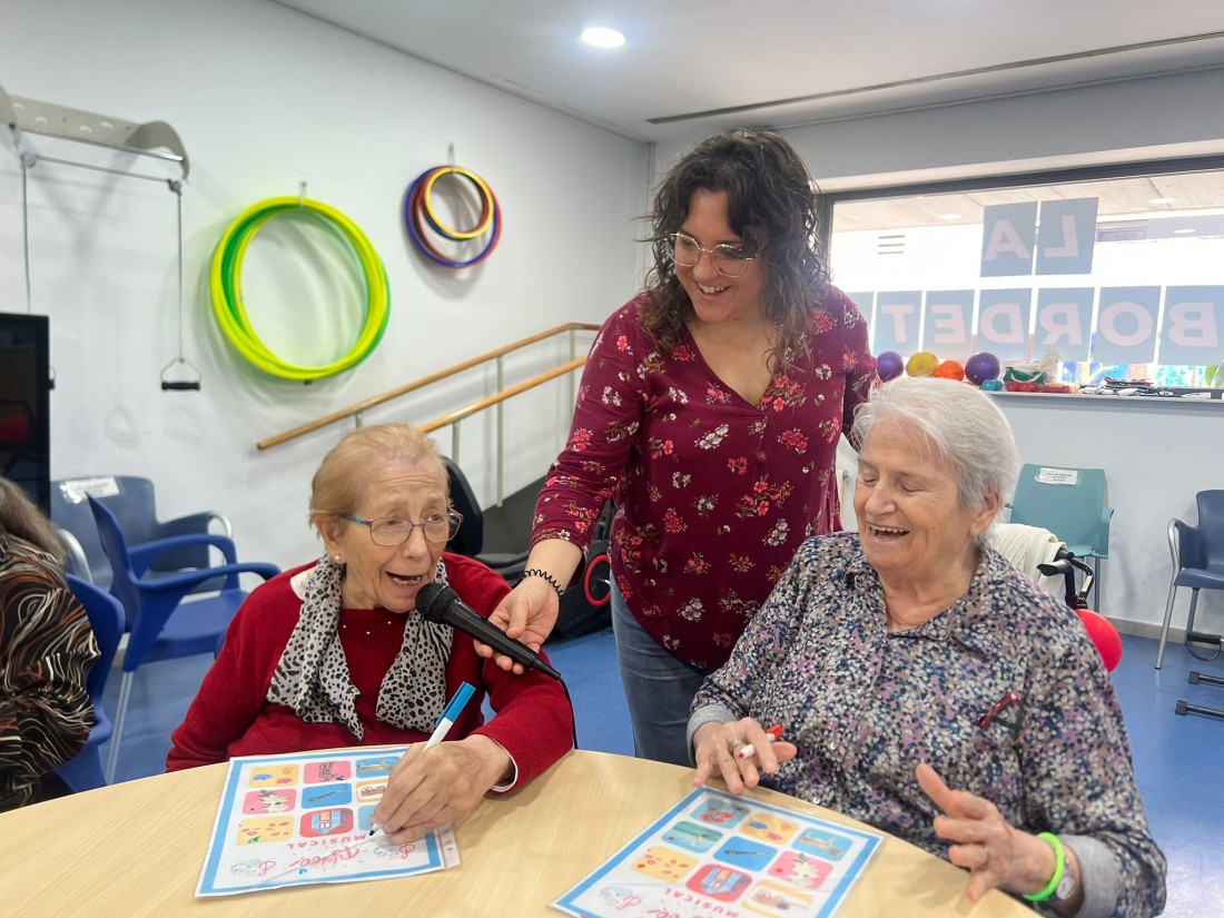 La proposta ha combinat música, records i diversió. En lloc de números, els nostres residents havien d’identificar cançons conegudes que anaven sonant. A mesura que reconeixien la melodia, marcaven la seva targeta amb molta il·lusió. Hem escoltat temes de tota la vida, que han despertat somriures, converses i fins i tot alguna cantarella espontània.