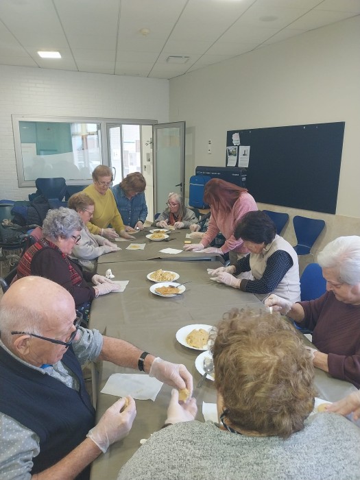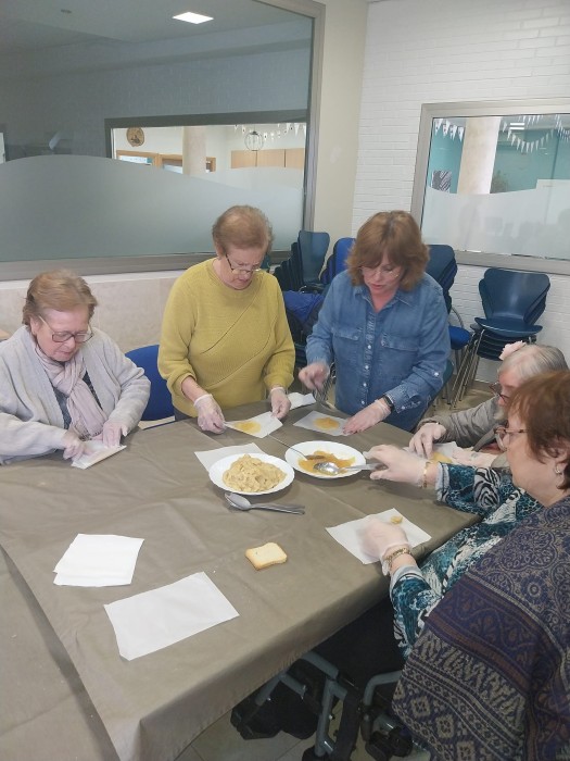 Un divendres al mes tenim el goig de rebre a @dones.deltebre amb un berenar i després taller de cuina. Divendres passat vam fer xocolatada i després taller de reposteria: pastissets de cabell d'àngel.