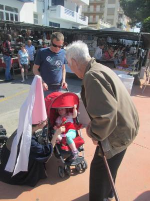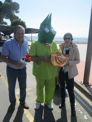 FELIÇ DIA DE SANT JORDI!! Aquest matí la princessa i el drac de l'Onada l'Ampolla acompanyats per tota la cort han anat al mercat a repartir roses i punts de llibre. Alguns s'han quedat ben estranyats de veure que el Drac no és tan ferotge com ens el presenten, a la nostra dolça princessa no li han faltat pretendents, i que dir de la cort? Hem rigut molt en veure la cara d'alguns vianants en veure tan meravellosa estampa! Lamentem que algúns us hagueu quedat sense rosa i/o punt de llibre, prometem que el proper Sant Jordi vindrem més carregats!! Ara ens queda l'explicació de la llegenda als nens de la llar d'infants! Que acabeu de passar una gran diada de Sant Jordi!