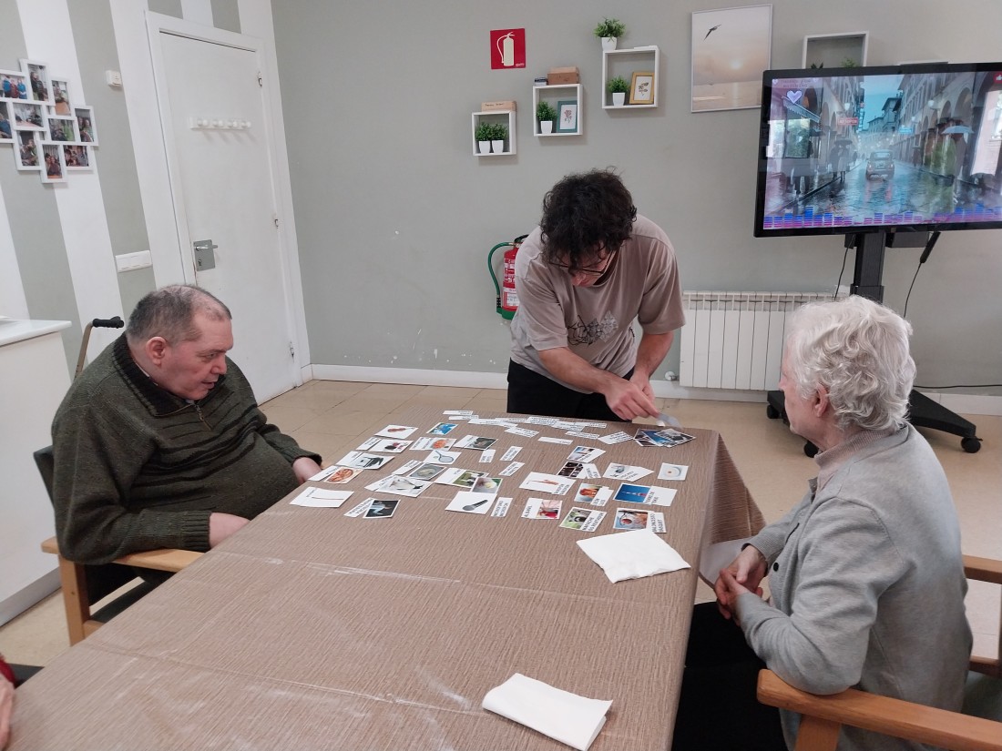 Aquí el podem veure duent a terme activitats d’estimulació cognitiva amb alguns dels nostres residents, compartint temps, atenció i dedicació en una tasca tan valuosa com enriquidora.