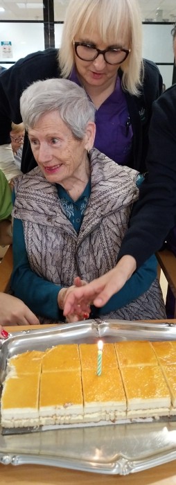 La Sra. Navarro va bufar les espelmes del seu pastís per celebrar els seus 82 anys!