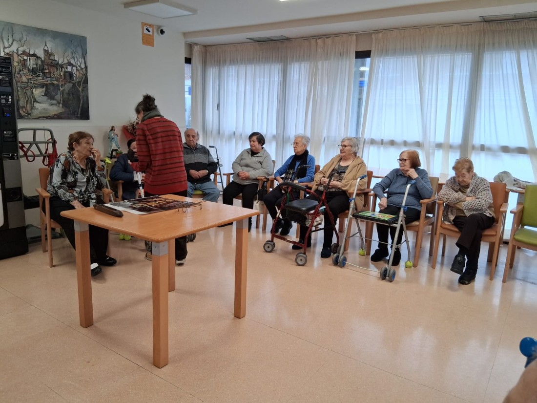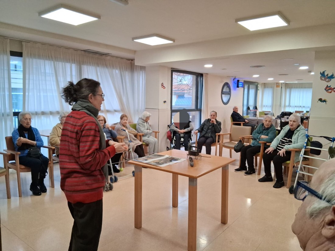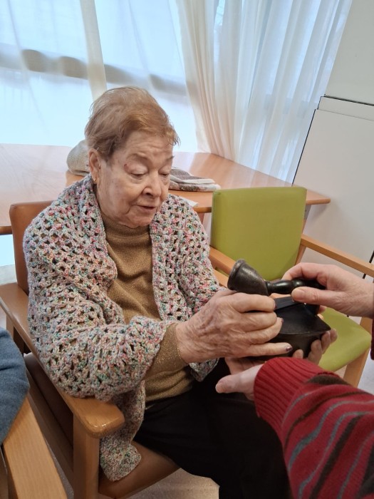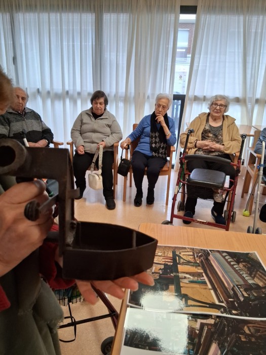 Venen del museu amb peces de tèxtil per fer reminiscència i recordar amb els avis i àvies.