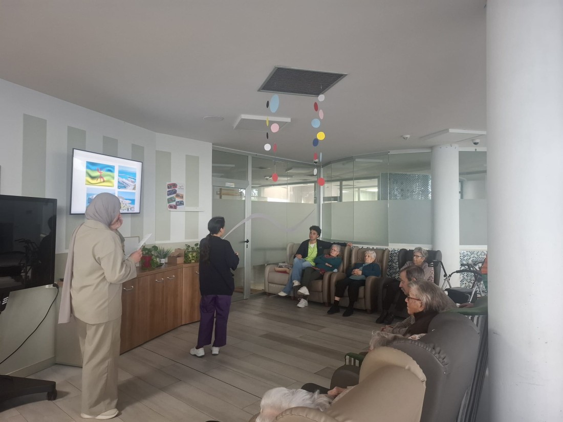 Avui la Aya la Noia de pràctiques que ha estat aquí al centre amb nosaltres ha fet el Viatgem des del sofà al seu país de naixement, ens a ensenyat els seus costums típics, festes... Hem menjat galetes típiques del Marroc i ens ho hem passat molt bé