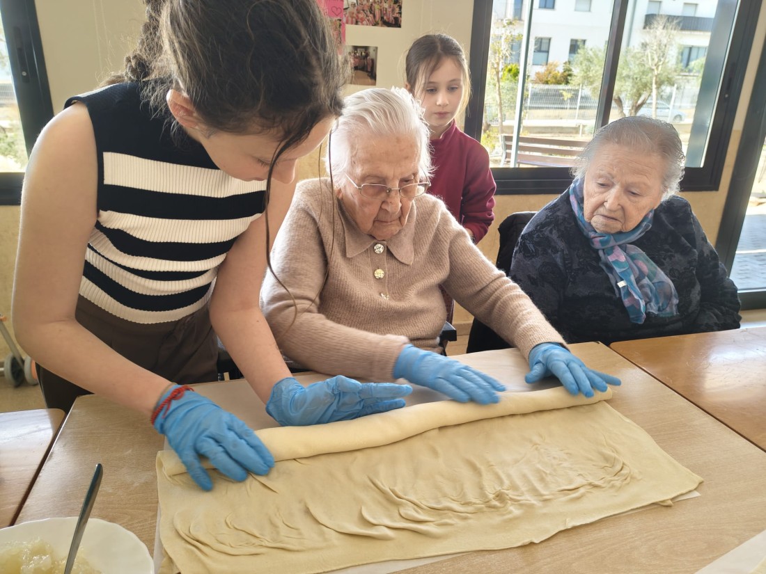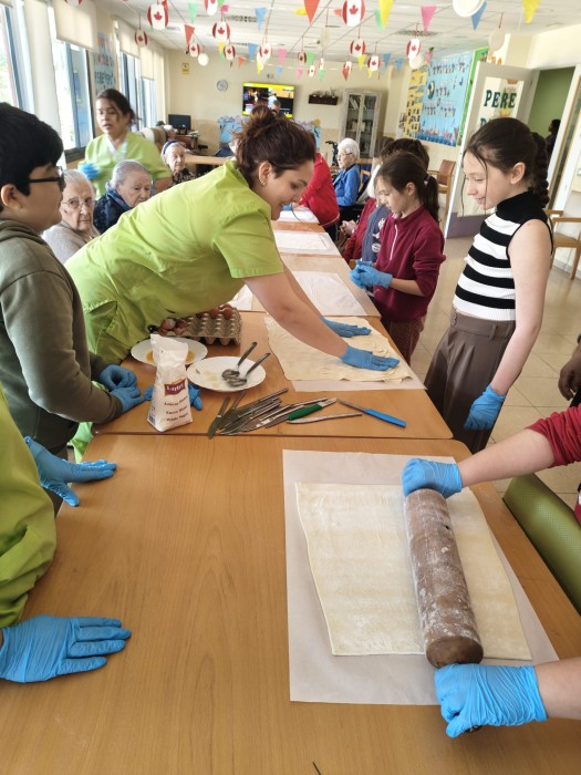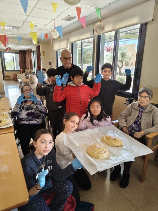 Amb motiu de la Pasqua, la residència va acollir una activitat molt especial : l'elaboració de mones de Pasqua de pasta de full amb cabell d'angel conjuntament amb nens i nenes de l'escola Sant Jordi.