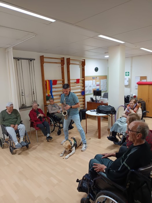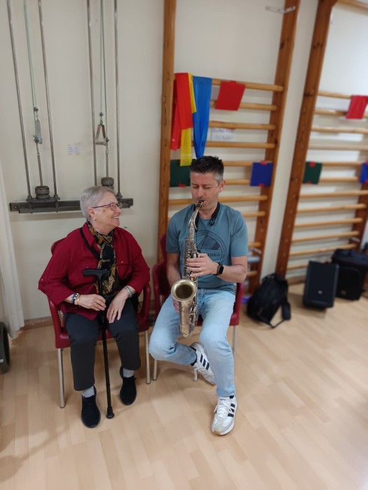 La setmana passada vam gaudir d’una preciosa activitat de teràpia assistida amb en Boby, que ens va regalar moments plens de tendresa i connexió. A més, vam tenir el privilegi de comptar amb l’acompanyament d’un saxofonista David, que ens va oferir un repertori de música en viu durant l’activitat.