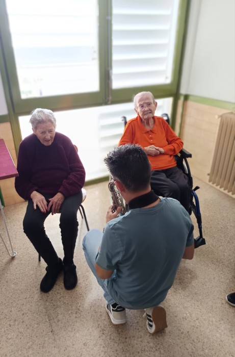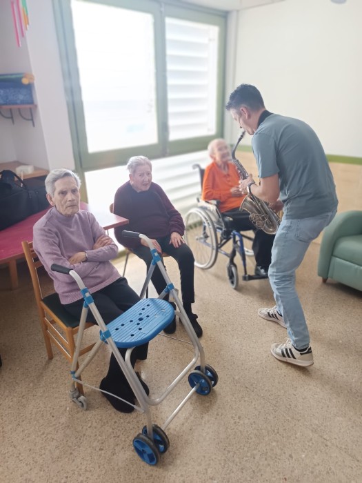 A les unitats més dependents també vam tenir l’oportunitat de gaudir d’aquesta experiència tan especial amb en Boby i el saxofonista David, en una activitat de caràcter més estimulatiu i sensorial.