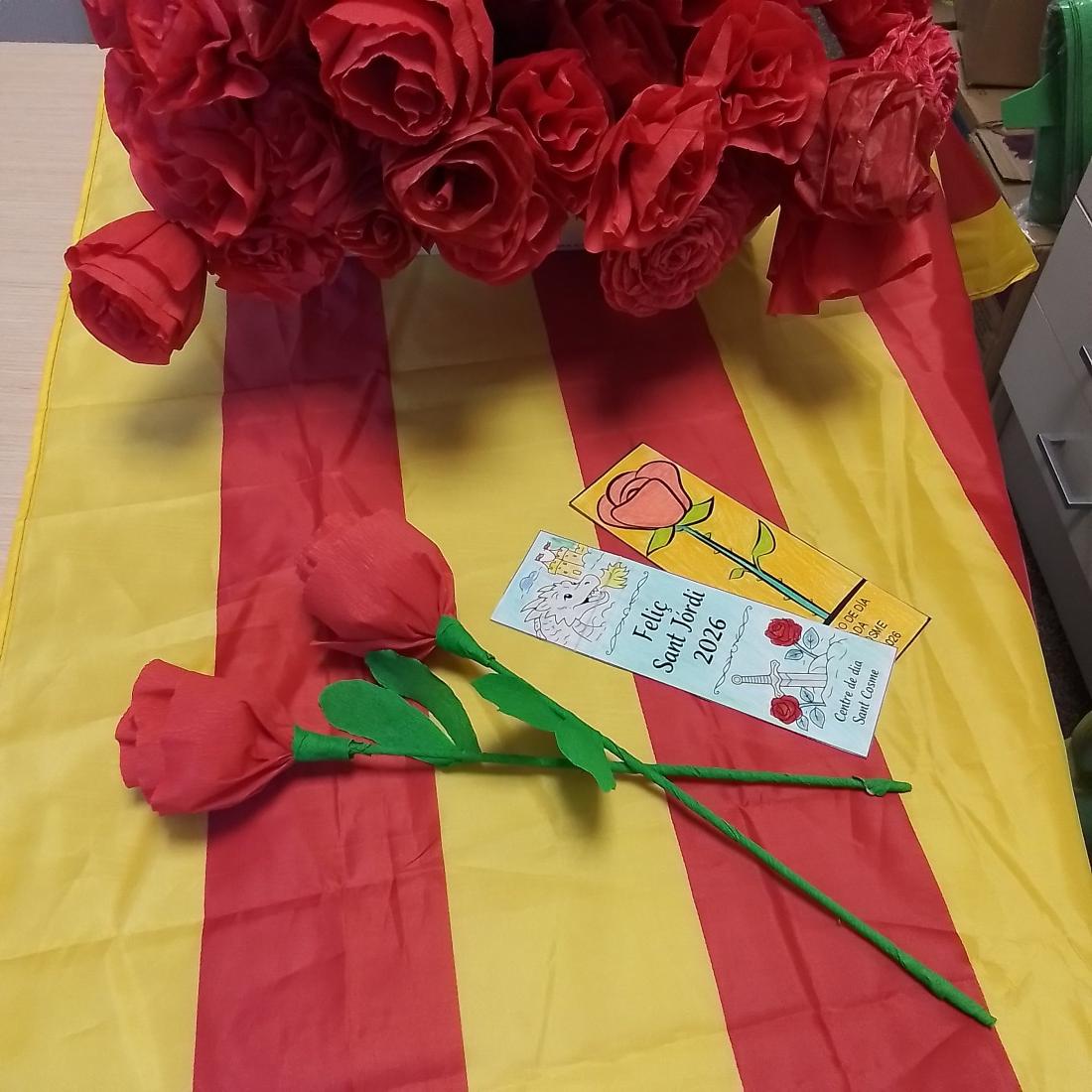 Nos preparamos para celebrar Sant Jordi con las rosas y los puntos de libro.