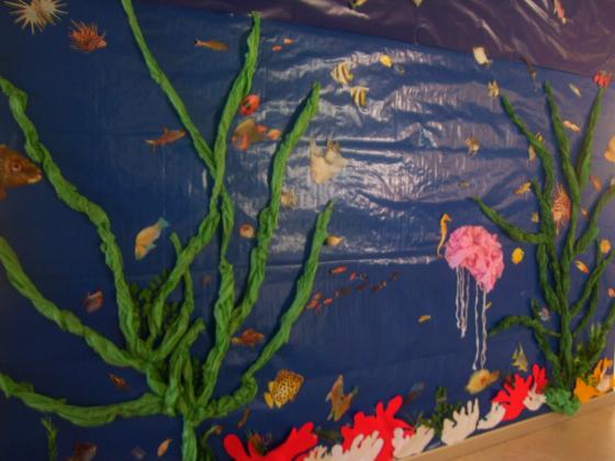 De moment hem realitzat un mural molt especial, "una peixera", la peixera es simbol de vida, de alegria de colors on cadascu de ells passa ratets observan-la i donan aportacions.