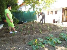 Què us pensaveu....? que això no arrelaria?.... Pos mireu quin goig de carabasseres, bajoqueres, margaridera, i quins llauradors més templats, com reguen l'hort, el cuiden..... i ells dominen les males herves i no a la inversa, com podeu vore.