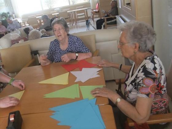 Per la tarde vam simular una foguerada i els avis van tirar els desitjos que havien escrit a un paper. I per la nit vam sopar al jardí. Un Sant Joan especial per tots.