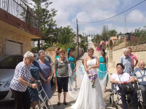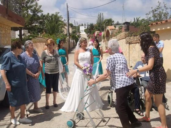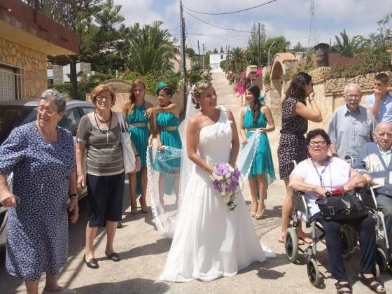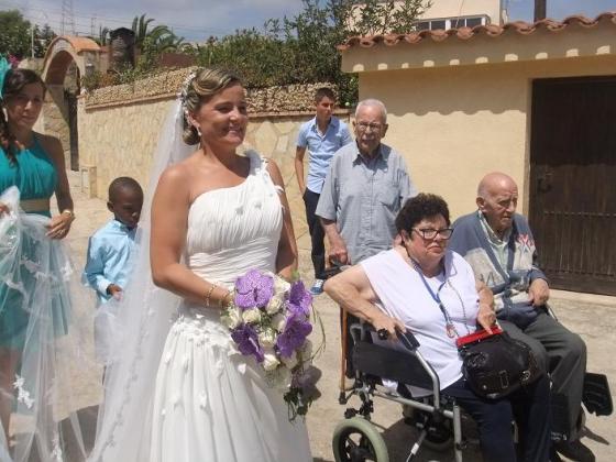 Ahir los residents de l'Onada Alcanar vam anar a Penyiscola d'excursió. La nostra companya Rocio es va casar i els avis volien anar a veure lo guapa que estava vestida de blanc. Vam marxar pel matí, vam fer una volta per Penyiscola i cap al migdia vam anar a veure la novia com sortia de casa. La paraula guapa és queda curta, estava espectacular.