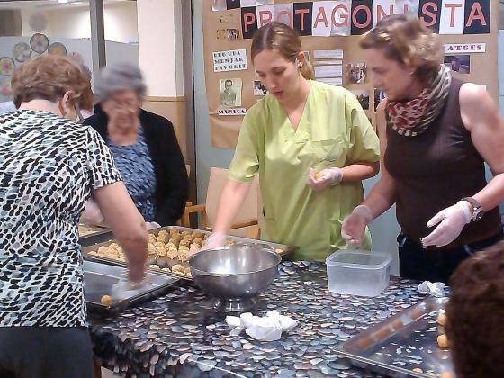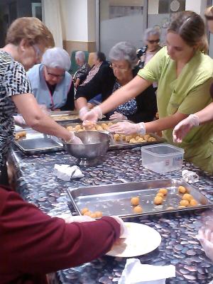 Aquesta setmana els avis i les àvies de l'Onada Alcanar hem estat preparant la festa de la Castanyada en molt d'entusiasme. Ens vam repartir la feina per dies, un dia vam preparar les paperines per les castanyes, l'altre vam fer el tallet a les castanyes per a què es torressin bé, un altre dia vàrem fer els panellets..... Finalment el divendres per la tarde va venir la senyora castanyera i vam passar una tarde molt dolceta: vam menjar castanyes, panelletes i un coc de poma que ens van portar les voluntaries. Vam acabar la festa cantant cançons tradicionals i ballant. Va ser genial!!