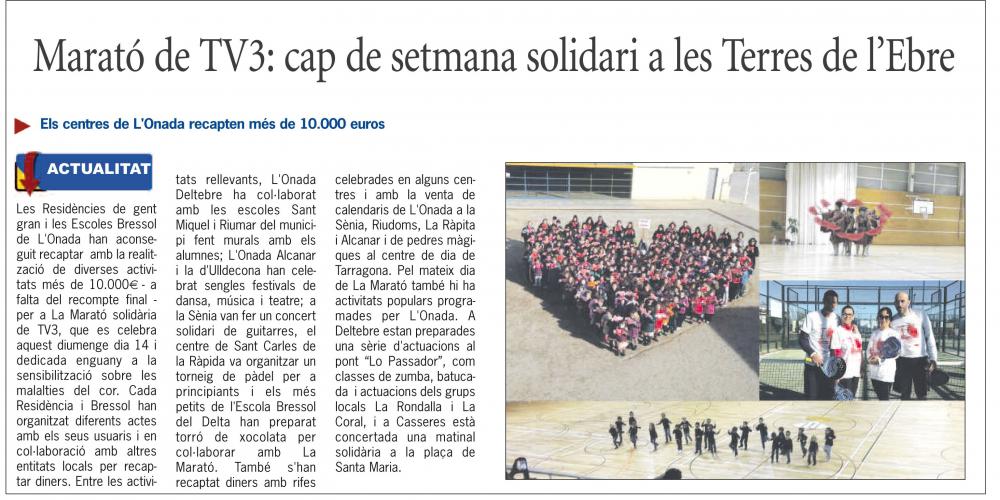 Marató de TV3: cap de setmana solidari a les Terres de l'Ebre