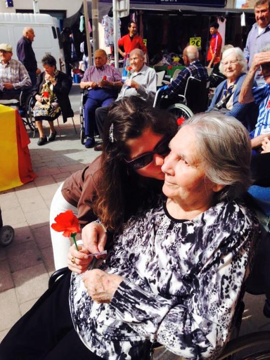 Avui hem sortit al mercat a regalar roses a canvi de abraçades, estan tots encantats de tants besitos que han rebut!!!!!!Feliç Sant JOrdi a tots!!!
