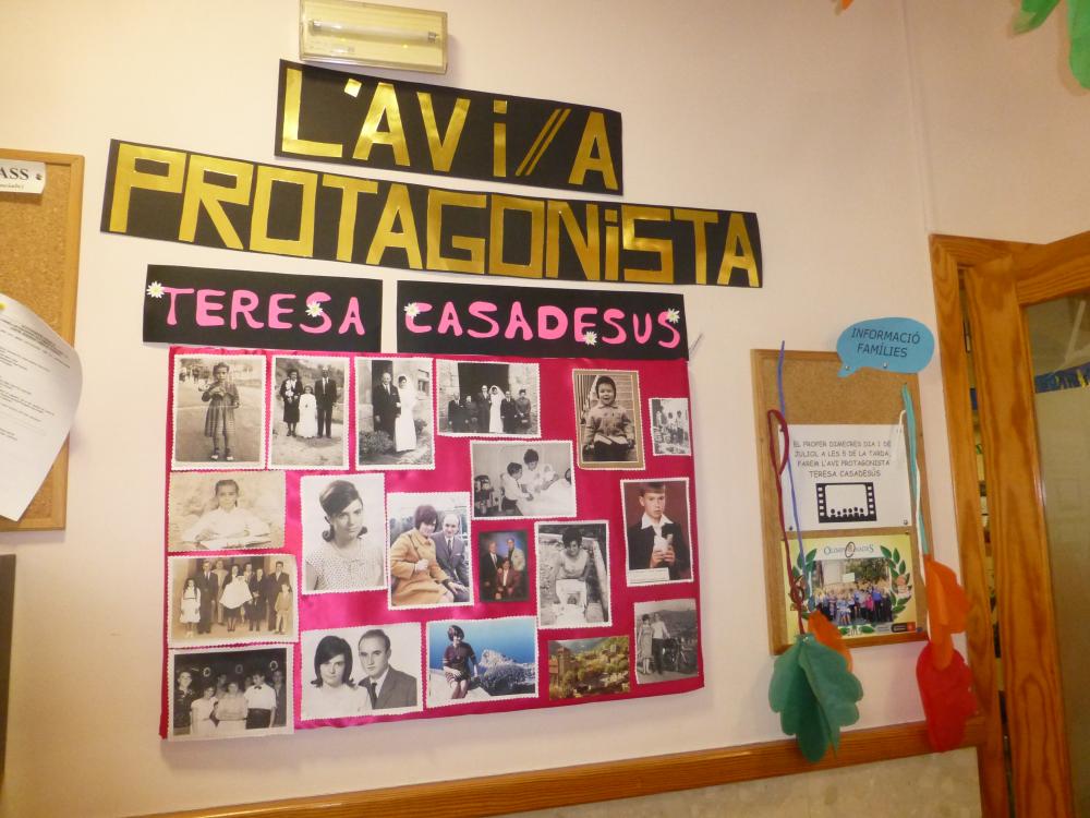 L'àvia protagonista d'aquests dies és la Teresa! Tenim exposades les seves fotos, ens ha ensenyat quin havia estat el seu ofici, ens va explicar molts dels llocs on ha viatjat i ens va fer una petita exposició de les seves pintures!