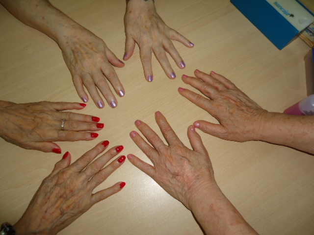 Aquí teniu algunes de les fotos del taller d'estètica, on les senyores aprofiten per fer tertúlia mentre es pinten les ungles, es pentinen, es maquillen...