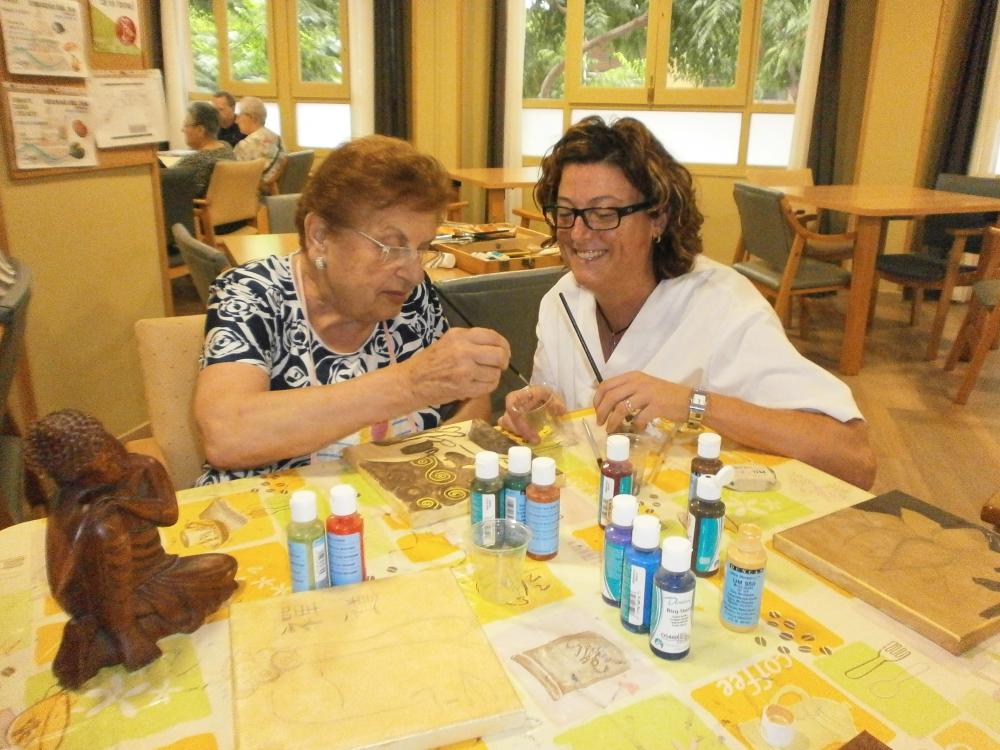Al Centre de Dia L'Onada Tarragona comptem setmanalment amb la col·laboració de l'Esther, una voluntària del nostre centre formada en disseny,que ha organitzat un taller de pintura.