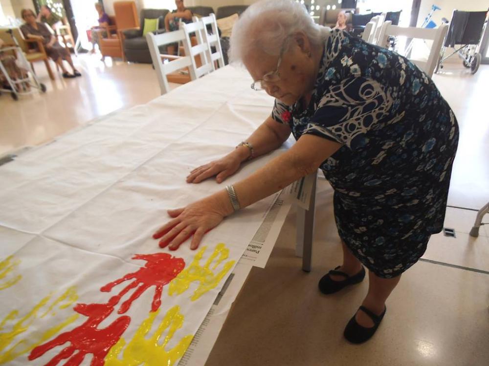 L'estem fent entre tots els usuaris, residents, familiars, amics... Ens agradaria que els veïns del poble també hi col·laboréssiu, així que tothom qui en tingui ganes pot passar per la residència i desar-hi la seva empremta.