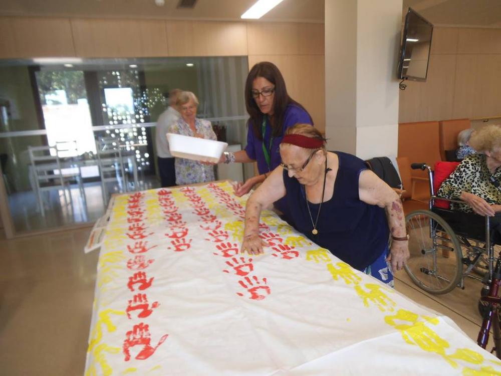 Aquests dies a la residència estem fent una senyera per penjar-la a la façana per la Diada.