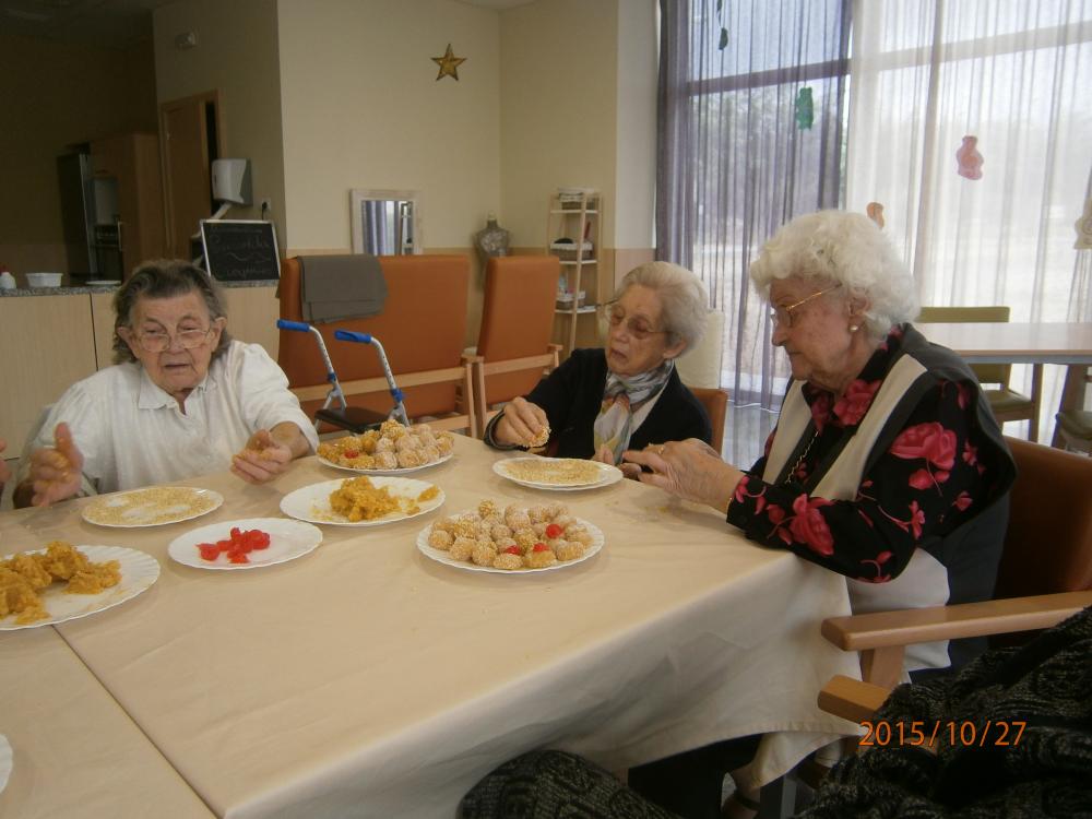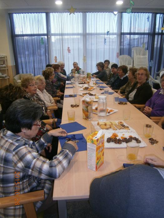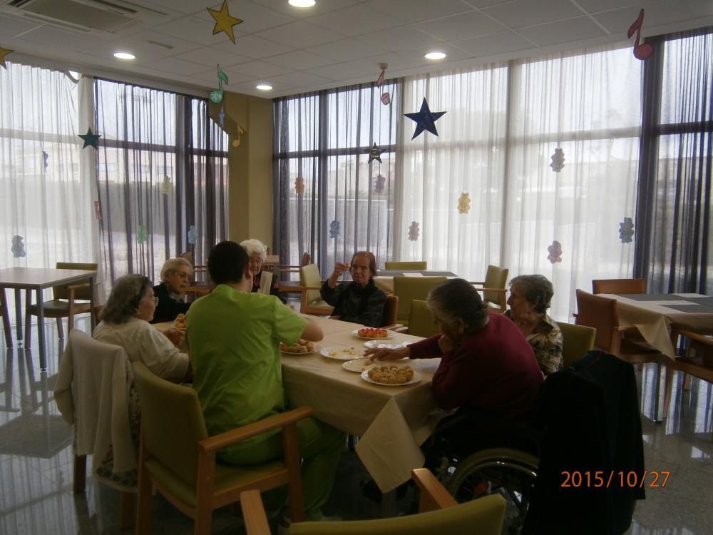 Al mes d'octubre, al Centre De Dia Mont-roig del Camp, vam fer diverses activitats al voltant de la celebració de la Castanyada. Vam començar rebent la visita dels nens i nenes de la Llar d'Infants, i vam preparar els nostres pròpis panellets, els quals vam gaudir amb la companyia de la Unió De Dones de Mont-roig, que com sempre van col·laborar amb nosaltres.