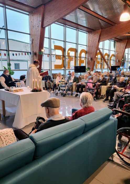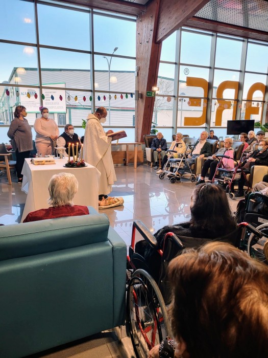Hoy se ha celebrado en nuestro centro por primera vez, LA EUCARISTÍA. Era muy deseada por las personas mayores que viven en nuestra residencia. Gracias a VICTOR, el párroco de Velilla de San Antonio, se ha podido celebrar. MIL GRACIAS. FELIZ NAVIDAD.