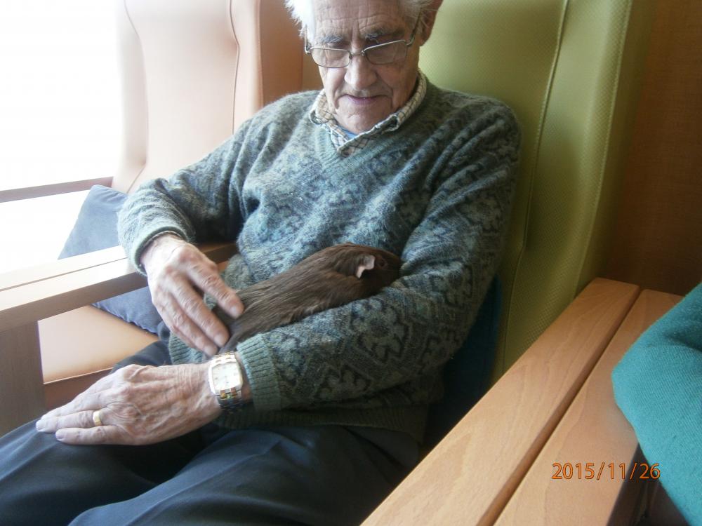 La nostra gerocultora Sandra té un cobai que es diu Almis (d'Almirante), i és un animalet molt dòcil que ha enamorat a l'equip i als avis, que no han deixat d'acariciar-lo i donar-li de menjar en tot el dia!!