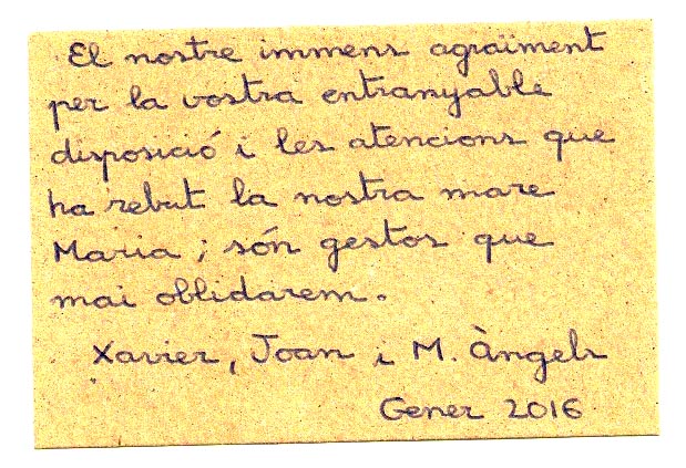 Agraïment familiars de Maria Crispí a L'Onada Casserres