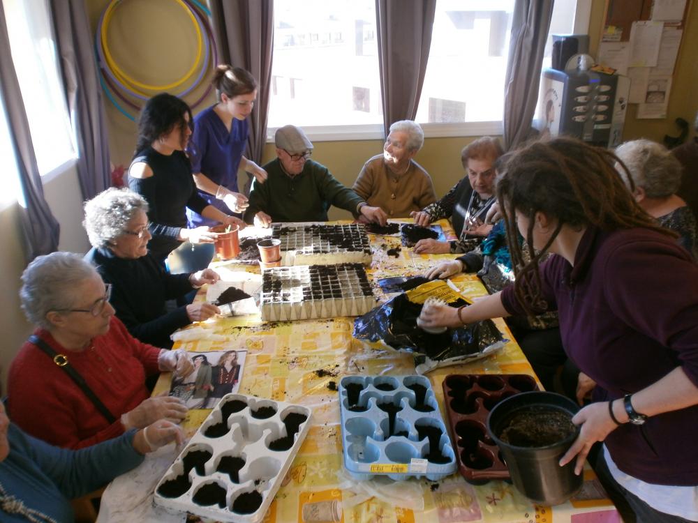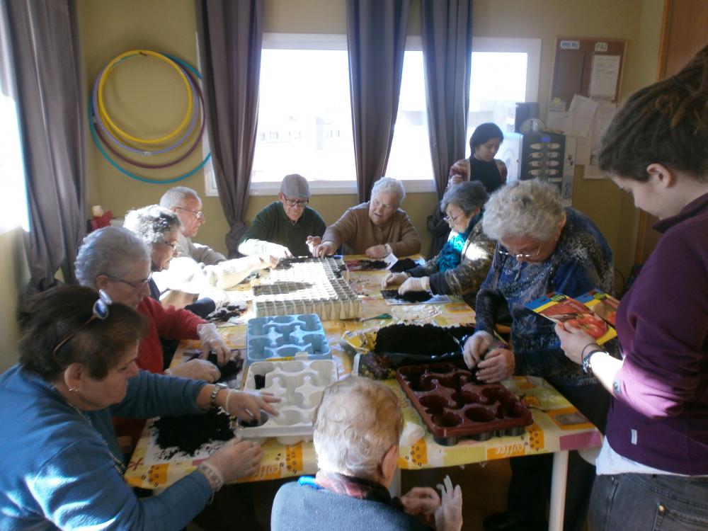 El dimarts passat al Centre de Dia L'Onada Tarragona vam estar preparant planter per poder-lo transplantar a l'hort la propera primavera: tomàquets, carbassons, cogombres, bajoques i carbasses, entre d'altres.