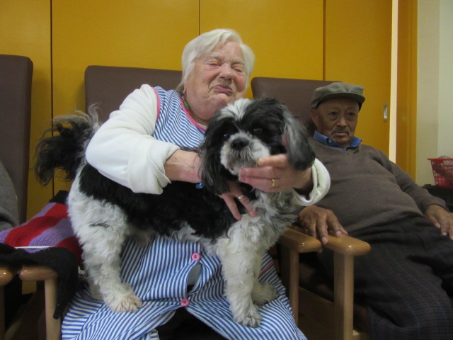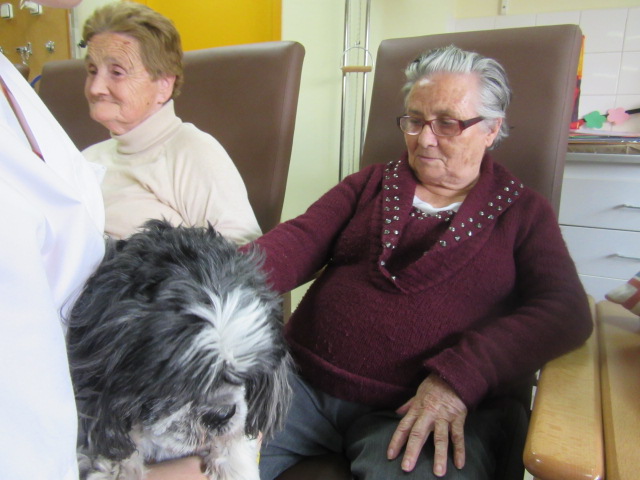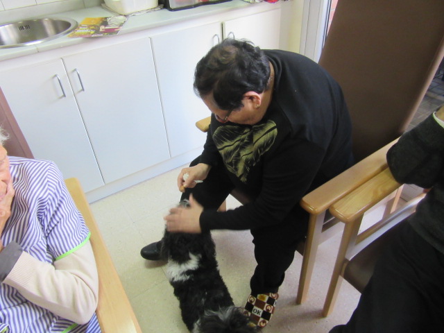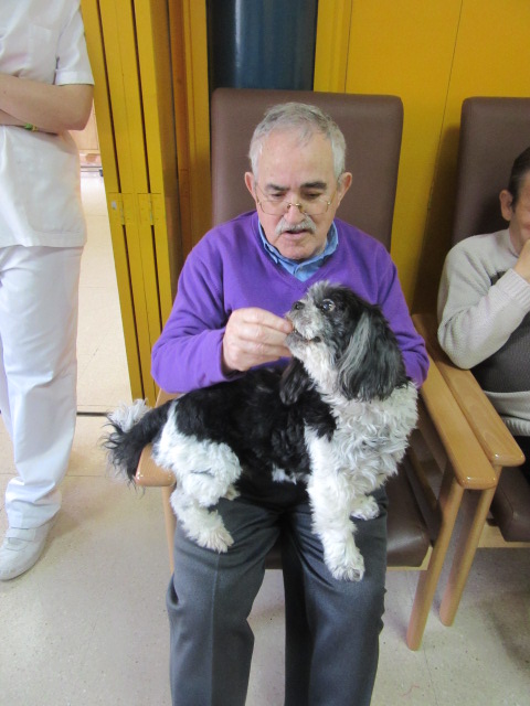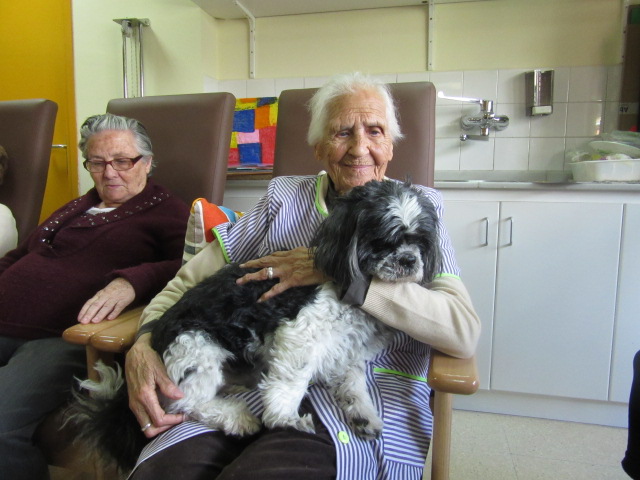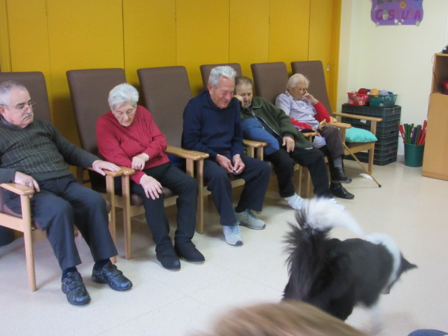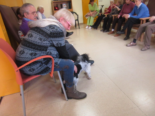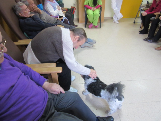 Al Centre de Dia Besòs-Mina s'ha començat a provar la Teràpia Assistida amb Gossos. Només ho hem realitzat dues vegades però veient que les reaccions dels usuaris han estat molt positives, volem programar aquesta activitat de forma contínua al centre.