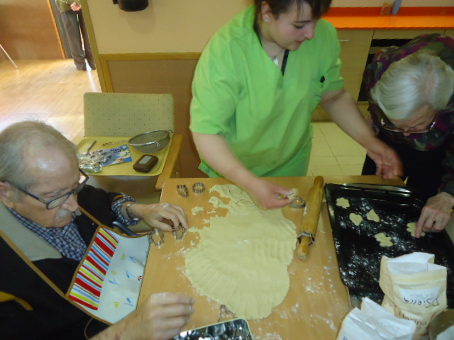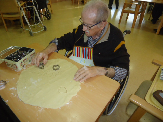 Potenciem la identitat del Pere, tota la vida ha treballat en una pastisseria molt coneguda de Reus i li vam proposar si voldria ensenyar-nos com feia ell les galetes de mantega. Ens va dir que si i aquest n'és el resultat. I quina oloreta més bona va quedar per tot el menjador!