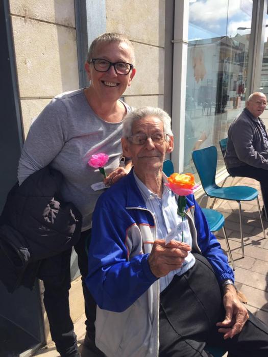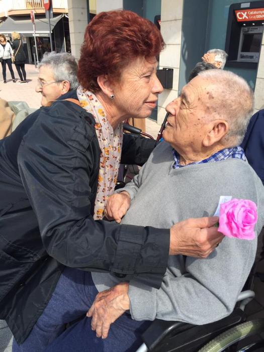 Nosaltres hem sortit al carrer en l'objectiu de repartir roses a canvi de moltes abraçades, ha sigut un mati molt especial on els nostres residents han quedat molt contents i satisfets.